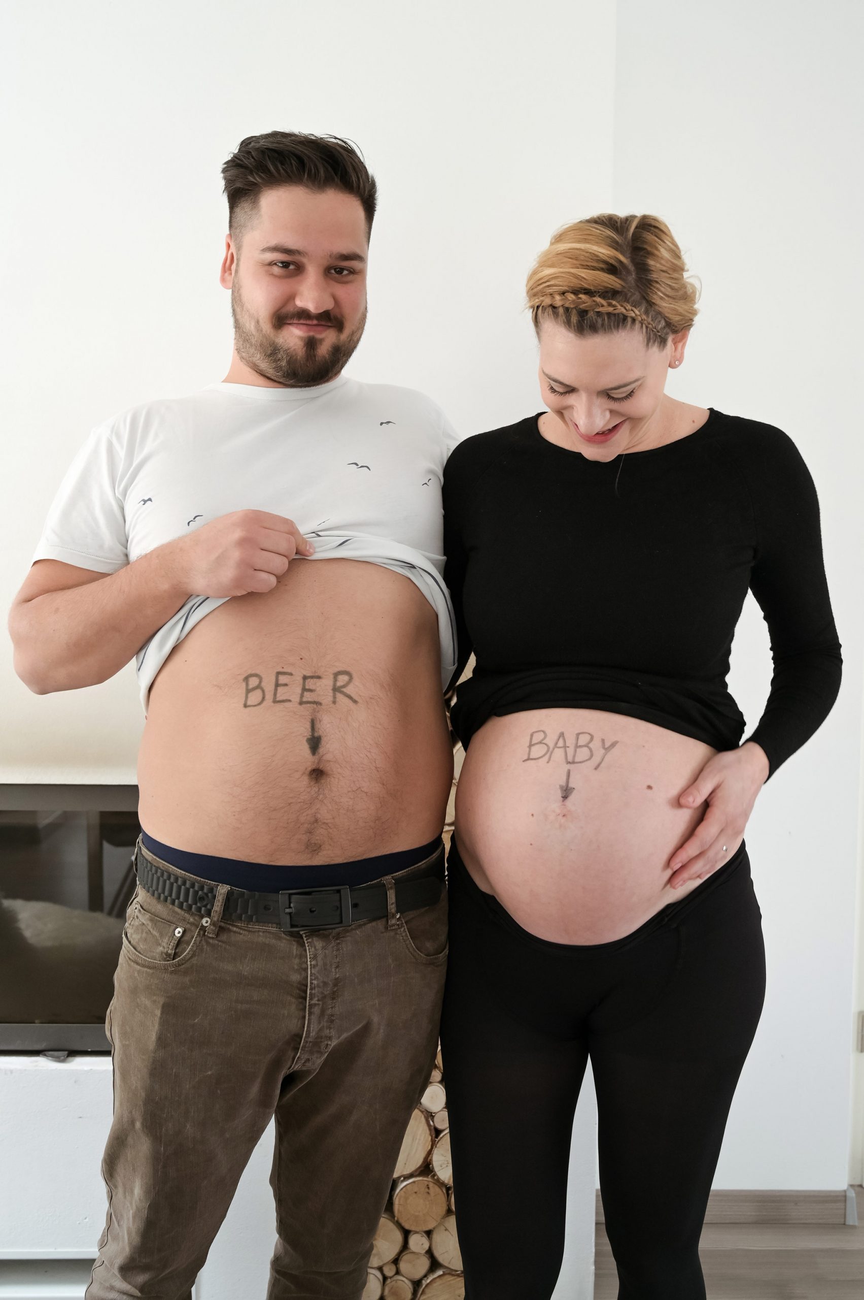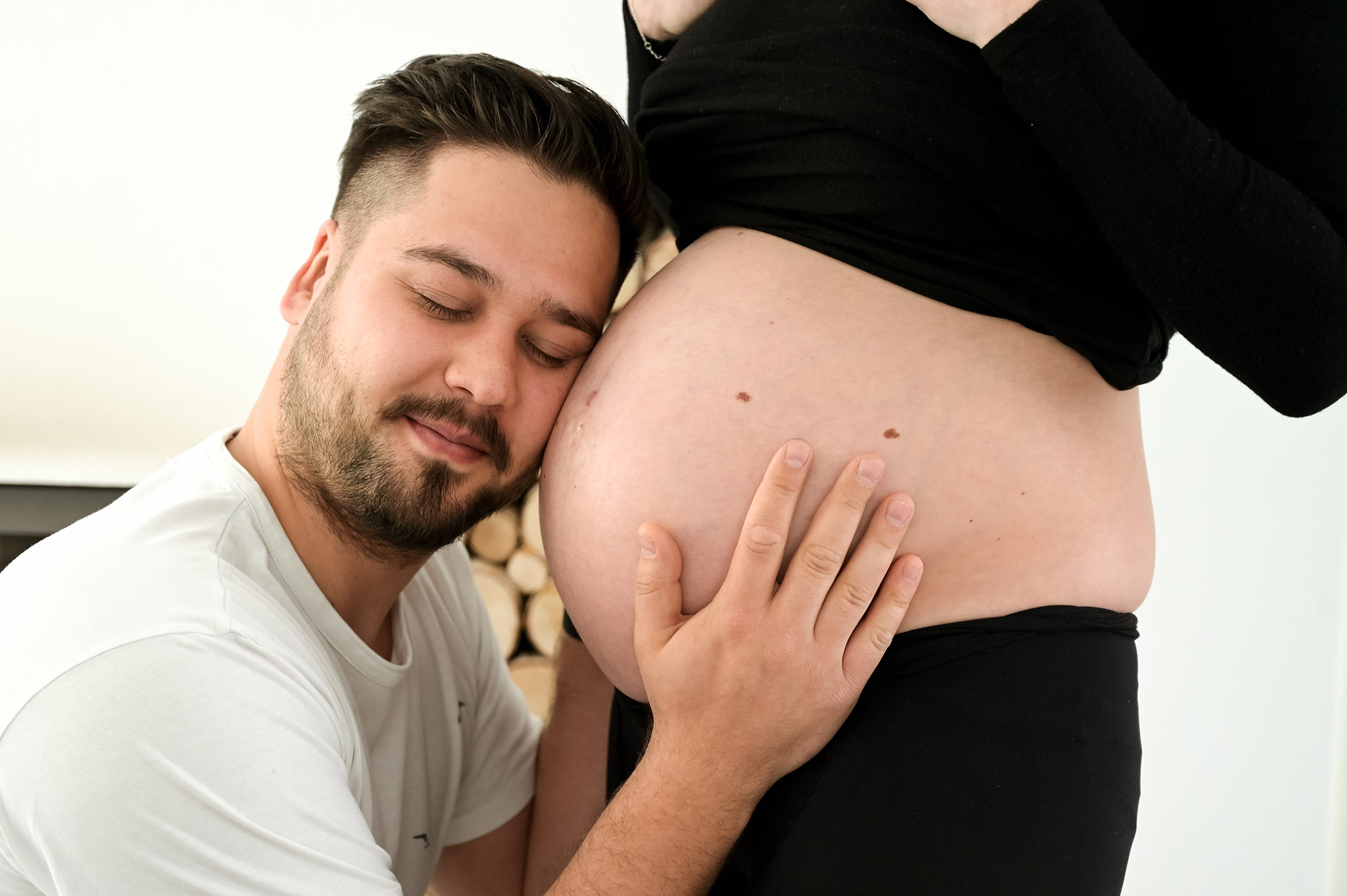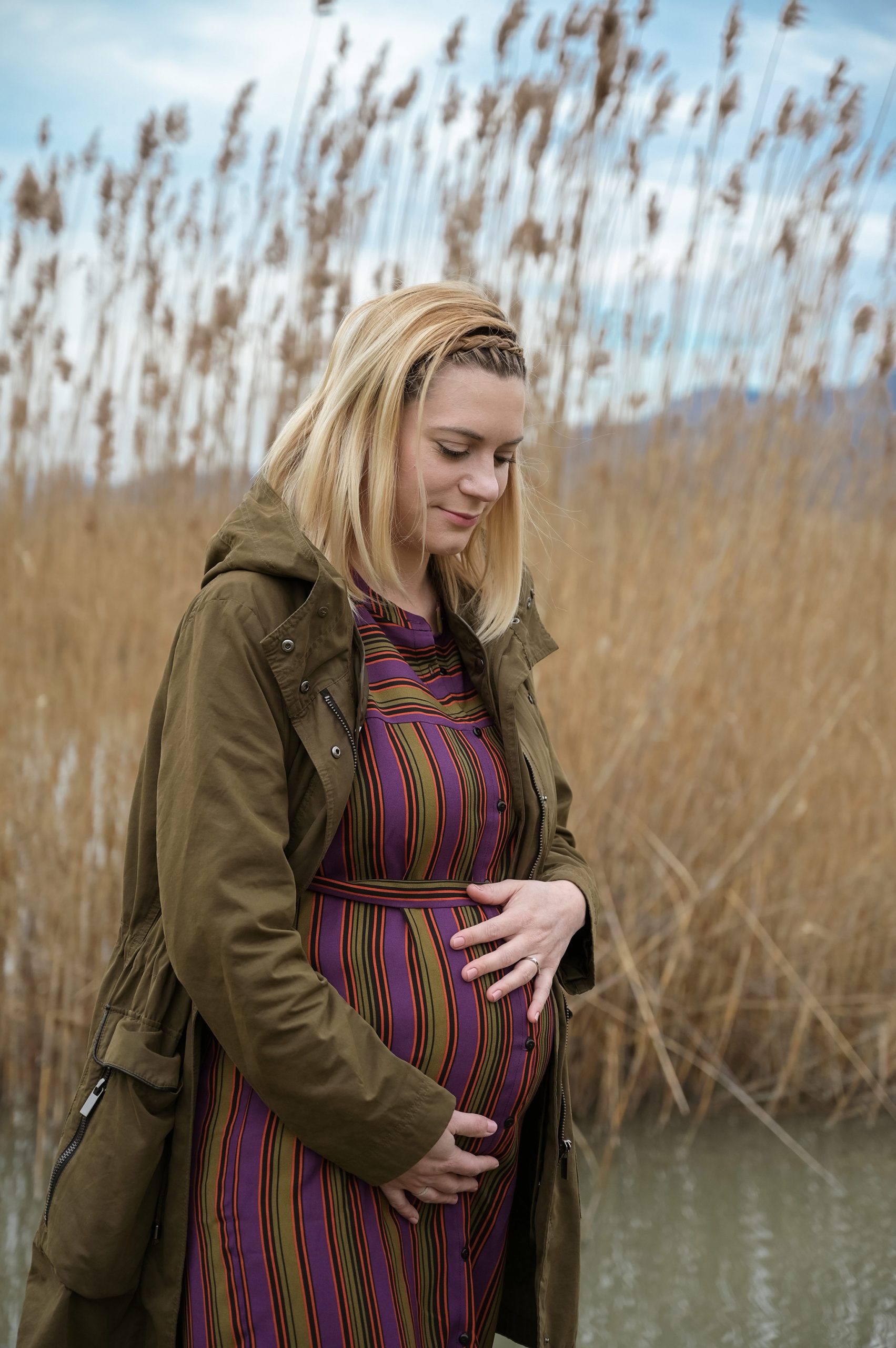 Pregnancy photoshoot in two locations (at home and at a nearby pond).
